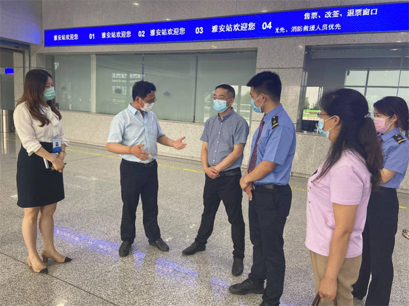 陳武一行分別檢查了火車站出、入站口的人員登記、測溫、掃碼等防疫措施落實情況,聽取了相關(guān)情況匯報,對運通公司開展雅安火車站疫情防控工作以來所取得的成效給予了充分肯定。
