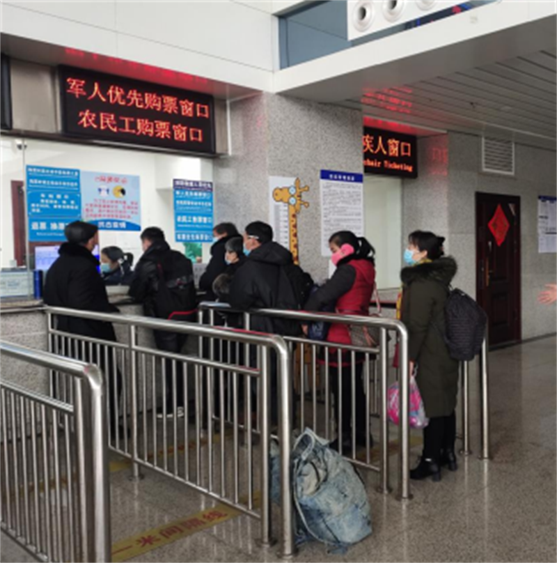 二是設(shè)立專門購(gòu)票窗口。設(shè)立專門的農(nóng)民工購(gòu)票窗口,安排車站工作人員在售票窗口引導(dǎo)和幫助農(nóng)民工朋友使用“微信購(gòu)票”、“自助售票機(jī)購(gòu)票”、“電子客票”等便捷綠色功能購(gòu)票乘車。