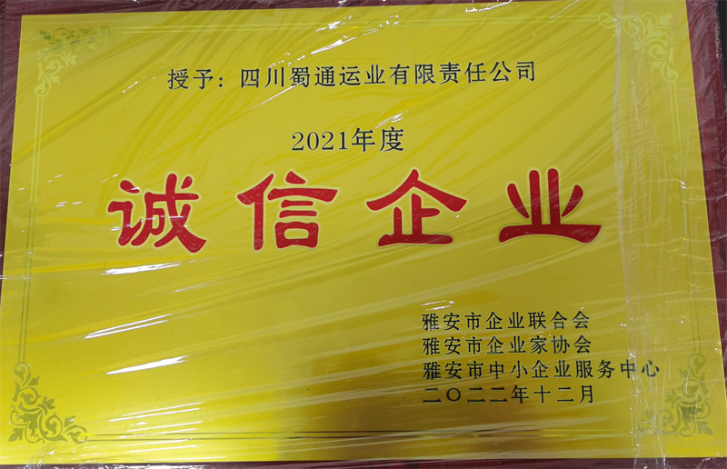 近日,蜀通公司被雅安市企業(yè)聯(lián)合會(huì)、雅安市企業(yè)家協(xié)會(huì)、雅安市中小企業(yè)服務(wù)中心授予“雅安市2021年度誠信企業(yè)”榮譽(yù)稱號(hào)。