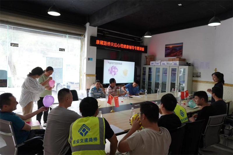 “6.1”蘆山地震發(fā)生后,路橋公司寶興項目部員工親身經(jīng)歷了全過程,第一時間組織人力、物力參加人員道路搶通保通和生產(chǎn)自救,突發(fā)地震災(zāi)害對職工造成不同程度的心理沖擊。活動中,左老師與員工們歡聚一堂,以小游戲與員工互動調(diào)整大家心理狀態(tài),圍繞員工心理健康常識、常見心理困擾及應(yīng)對策略和如何緩解工作壓力、控制個人情緒、提高心理健康水平等內(nèi)容,評估員工心理健康狀況,剖析員工情緒現(xiàn)狀及負(fù)面情緒產(chǎn)生的原因,幫助梳理解決方案。