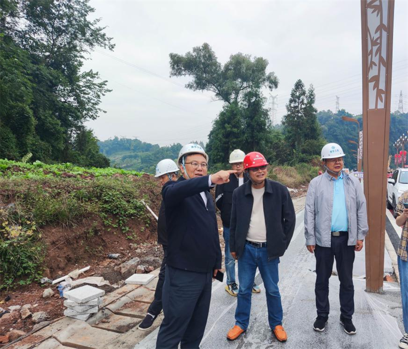 漆家華一行首先來到雨名快速通道項目成雅高速跨線橋施工現(xiàn)場,詳細詢問了解工程建設(shè)進度、安全生產(chǎn)管理制度落實和施工人員安全防護等情況。要求在建項目參建各方務(wù)必始終繃緊安全這根弦,加強安全監(jiān)管,落實全流程安全責(zé)任,規(guī)范施工作業(yè),確保項目建設(shè)施工安全,守牢安全生產(chǎn)底線,不斷提升安全水平。