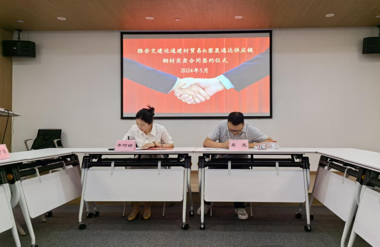 近日,雅安交建集團(tuán)運(yùn)通建材貿(mào)易有限公司(以下簡(jiǎn)稱:建材公司)與四川蓉晟通達(dá)供應(yīng)鏈管理有限公司(以下簡(jiǎn)稱:蓉晟通達(dá)公司)在成都舉行鋼材買賣合同簽約儀式,標(biāo)志著建材公司順利完成2024年度首個(gè)市外貿(mào)易業(yè)務(wù)的簽訂工作,且合同金額超2300萬元。