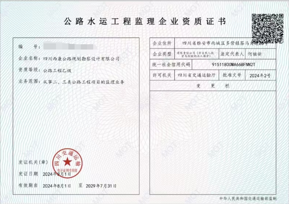 近日,經(jīng)四川省交通運輸廳批準,雅安交建集團勘察設計公司成功取得公路工程監(jiān)理乙級資質(zhì),該資質(zhì)的成功獲批,標志著我公司業(yè)務邁向新領(lǐng)域。