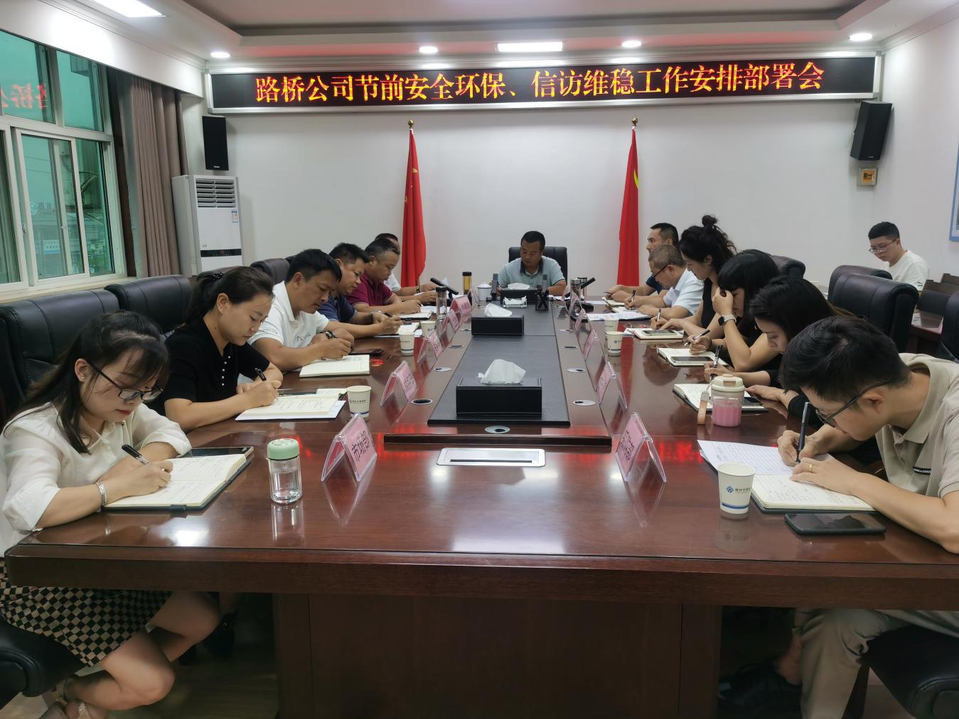 9月29日,路橋公司組織召開(kāi)節(jié)前安全環(huán)保信訪維穩(wěn)工作會(huì),總經(jīng)理吳小明主持會(huì)議并安排部署下步工作,各分(子)公司、項(xiàng)目部和公司各部門員工參加會(huì)議。