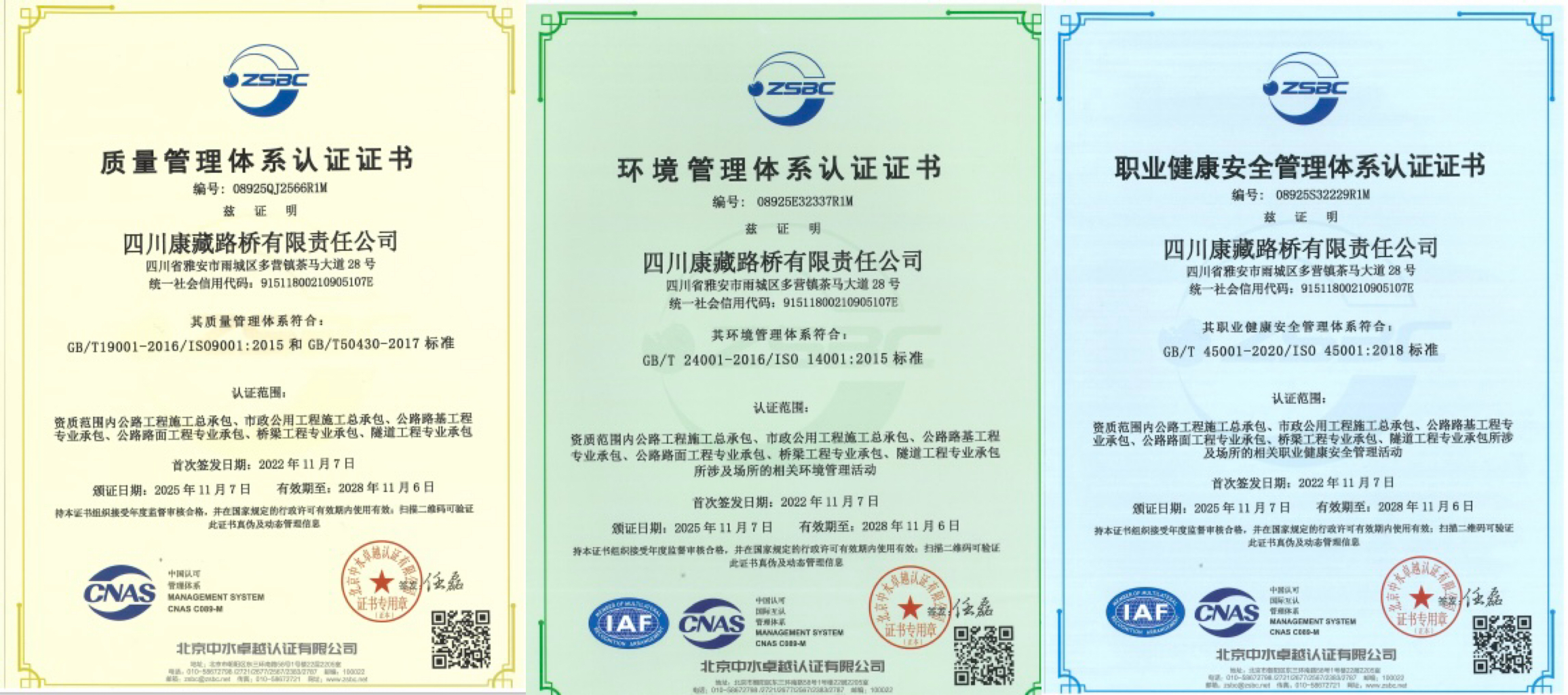 近日,康藏路橋公司順利通過(guò)質(zhì)量管理體系、環(huán)境管理體系及職業(yè)健康安全管理體系評(píng)審,并成功獲得相應(yīng)認(rèn)證證書(shū)。