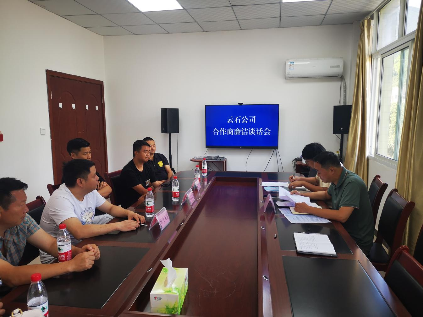 為營造風(fēng)清氣正、崇尚廉潔的合作氛圍,7月1日上午,云石公司總經(jīng)理趙強主持召開合作商廉潔座談會。公司班子成員、業(yè)務(wù)部門負(fù)責(zé)人、紀(jì)檢聯(lián)絡(luò)員以及新采購的3家合作商代表參加座談。