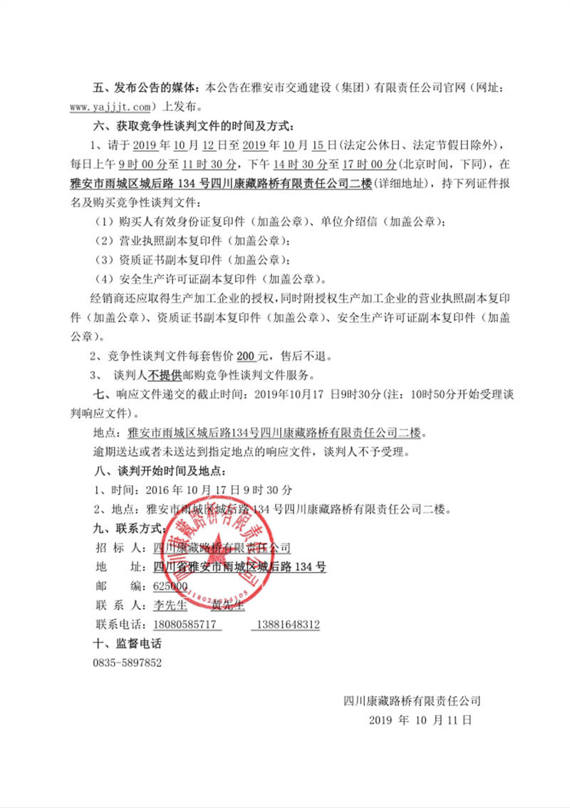 四川康藏路橋有限責(zé)任公司國(guó)道351線磽磧至夾金山段路面改造工程防護(hù)網(wǎng)采購競(jìng)爭(zhēng)性談判公告