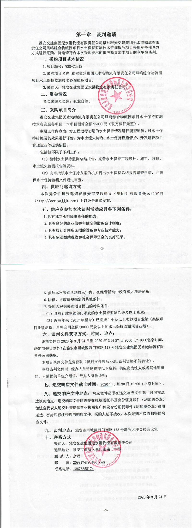 雅安交建集團(tuán)無(wú)水港物流有限責(zé)任公司鳳鳴綜合物流園項(xiàng)目水土保持監(jiān)測(cè)技術(shù)咨詢服務(wù)項(xiàng)目競(jìng)爭(zhēng)性談判公告