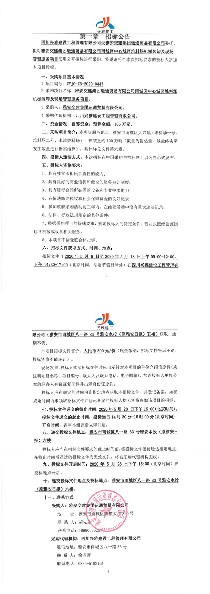 雅安交建集團(tuán)運(yùn)通貿(mào)易有限公司雨城區(qū)中心城區(qū)堆料場機(jī)械裝卸及現(xiàn)場管理服務(wù)項(xiàng)目招標(biāo)公告