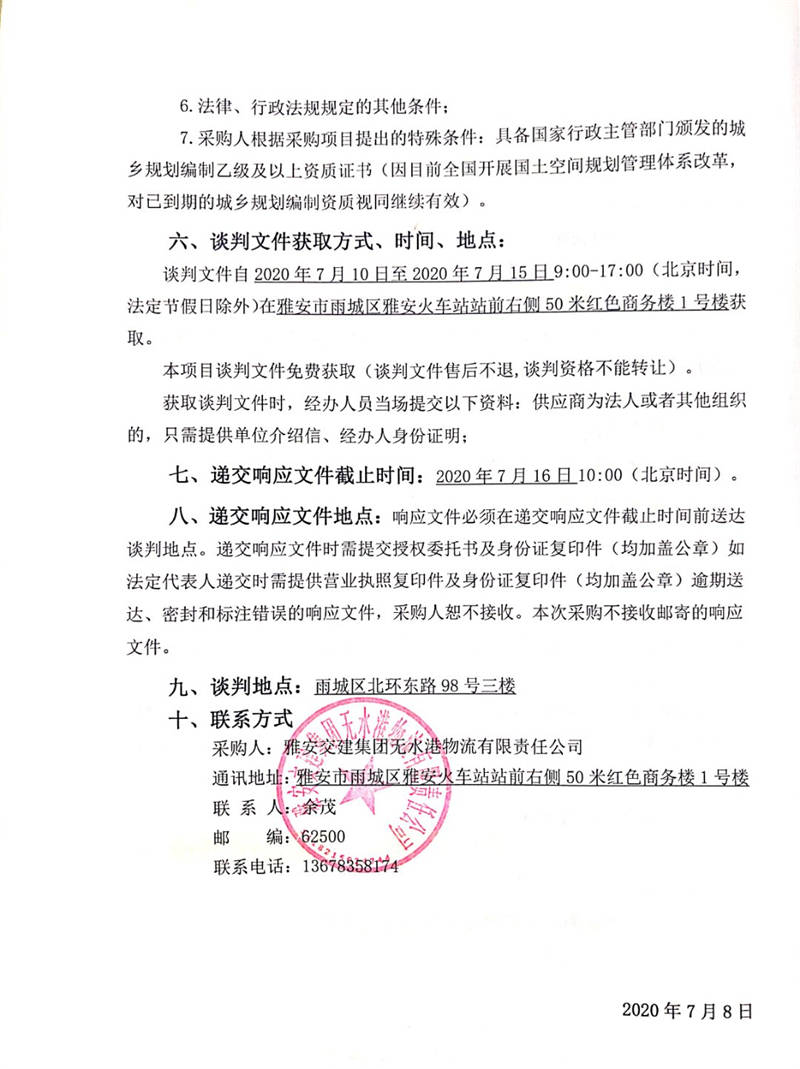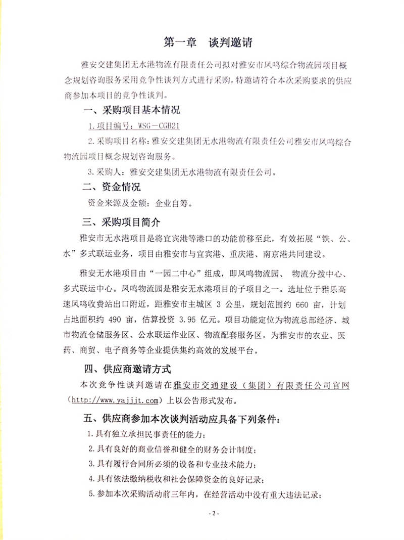 雅安交建集團無水港物流有限責任公司雅安市鳳鳴綜合物流園項目概念規(guī)劃咨詢服務競爭性談判公告