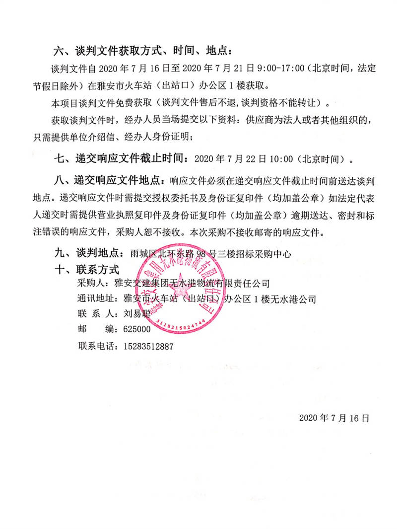 雅安交建集團無水港物流有限責任公司雅安市鳳鳴綜合物流園項目戶外廣告牌制作安裝施工項目(第二次)競爭性談判公告