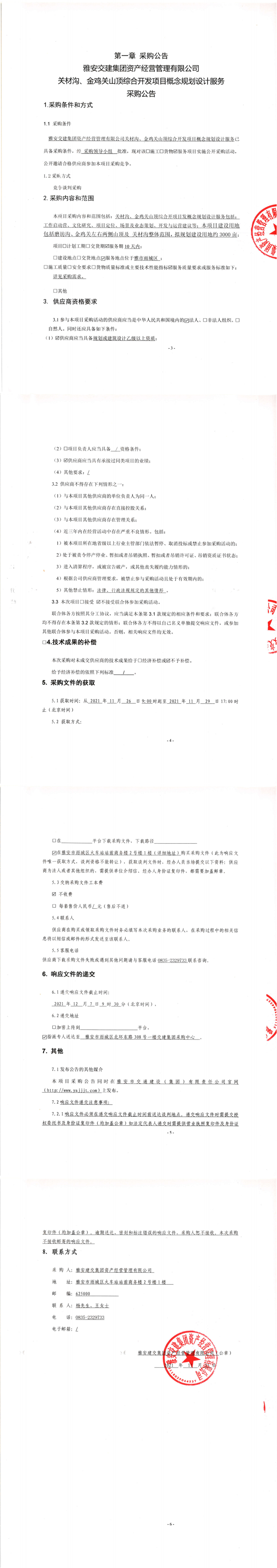 雅安交建集團(tuán)資產(chǎn)經(jīng)營管理有限公司關(guān)材溝、金雞關(guān)山頂綜合開發(fā)項目概念規(guī)劃設(shè)計服務(wù)采購公告