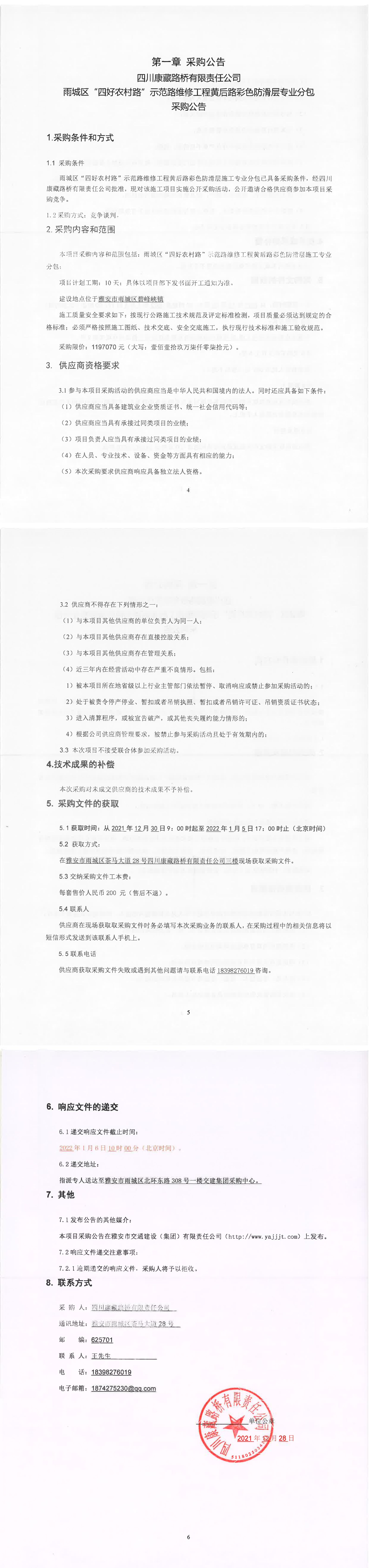 四川康藏路橋有限責(zé)任公司雨城區(qū)“四好農(nóng)村路”示范路維修工程黃后路彩色防滑層專(zhuān)業(yè)分包采購(gòu)公告