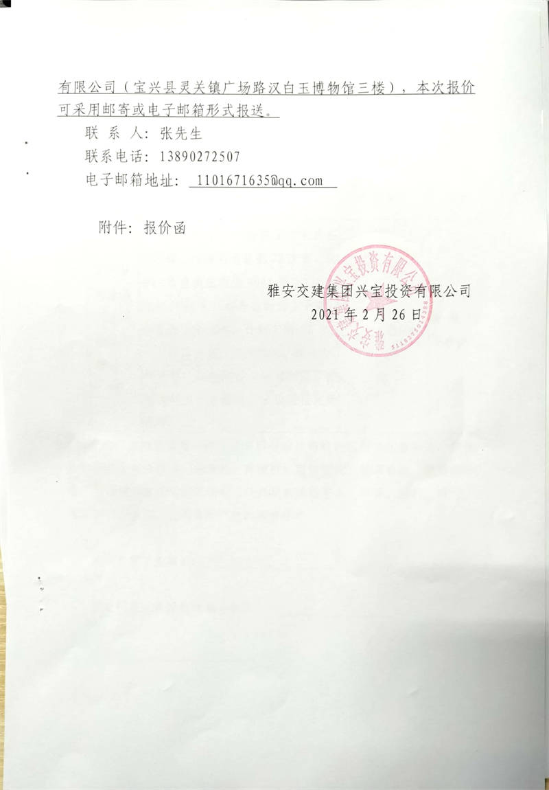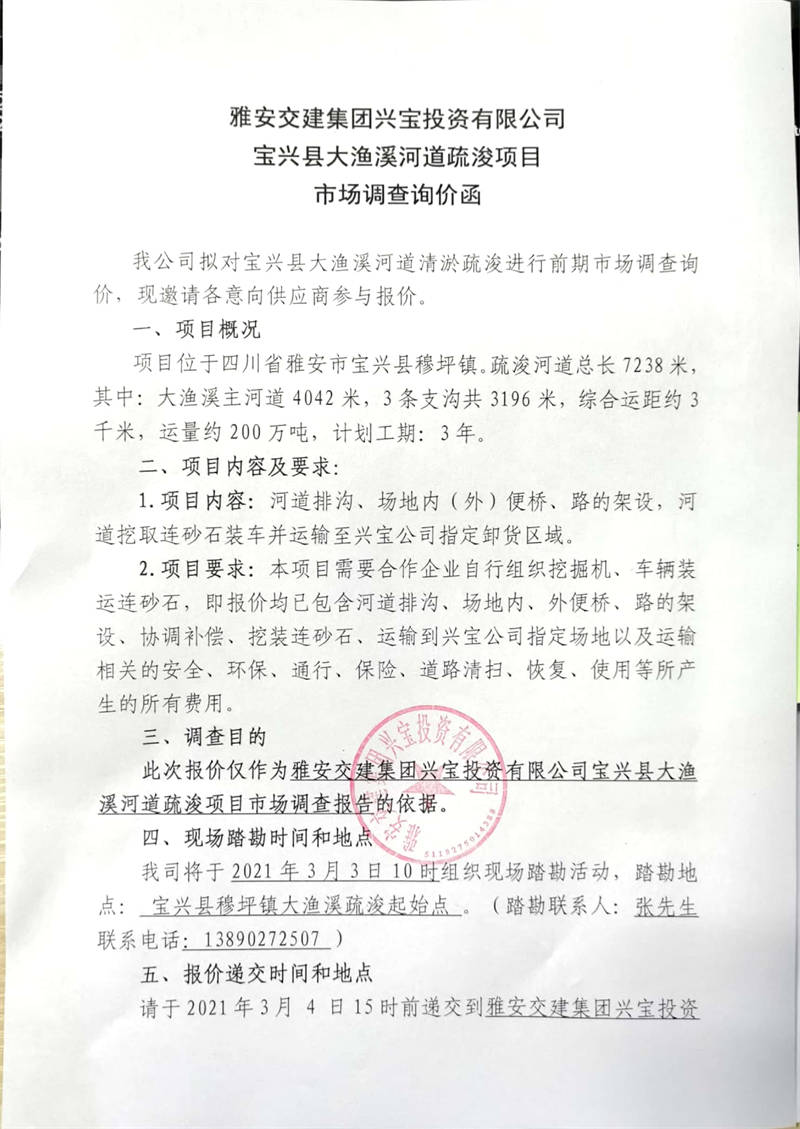 雅安交建集團興寶投資有限公司寶興縣大漁溪河道疏浚項目市場調查詢價公告