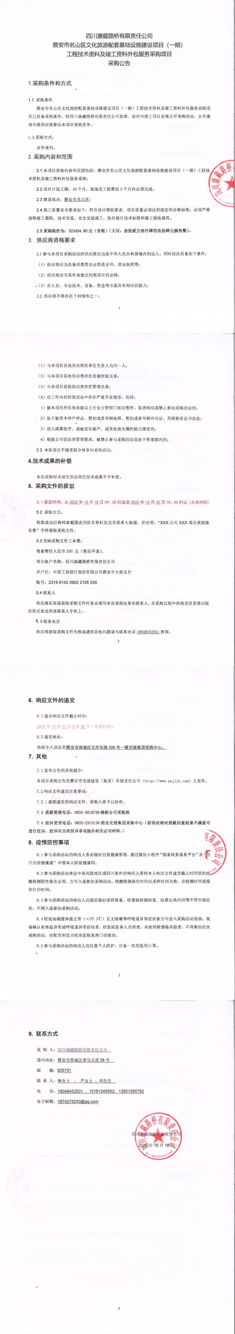 四川康藏路橋有限責(zé)任公司雅安市名山區(qū)文化旅游配套基礎(chǔ)設(shè)施建設(shè)項(xiàng)目(一期)工程技術(shù)資料及竣工資料外包服務(wù)采購(gòu)項(xiàng)目采購(gòu)公告