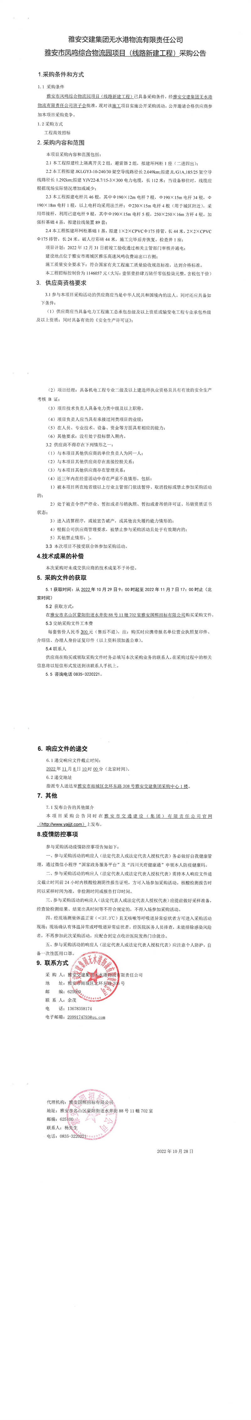 雅安交建集團(tuán)無水港物流有限責(zé)任公司雅安市鳳鳴綜合物流園項目(線路新建工程)采購公告