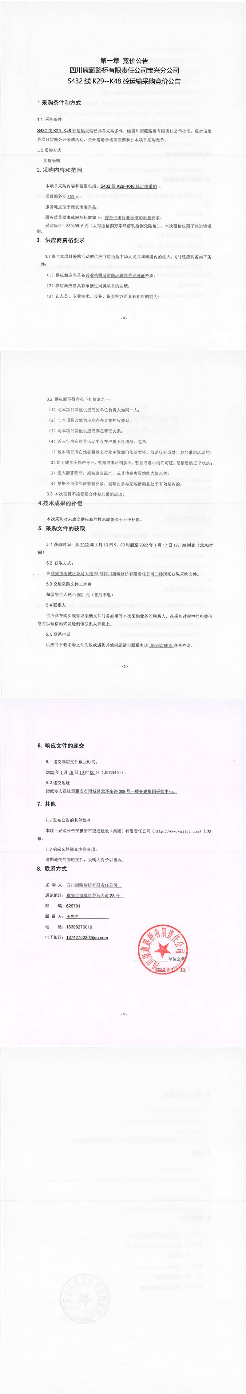 四川康藏路橋有限責(zé)任公司寶興分公司S432線K29-K48砼運(yùn)輸采購競(jìng)價(jià)公告