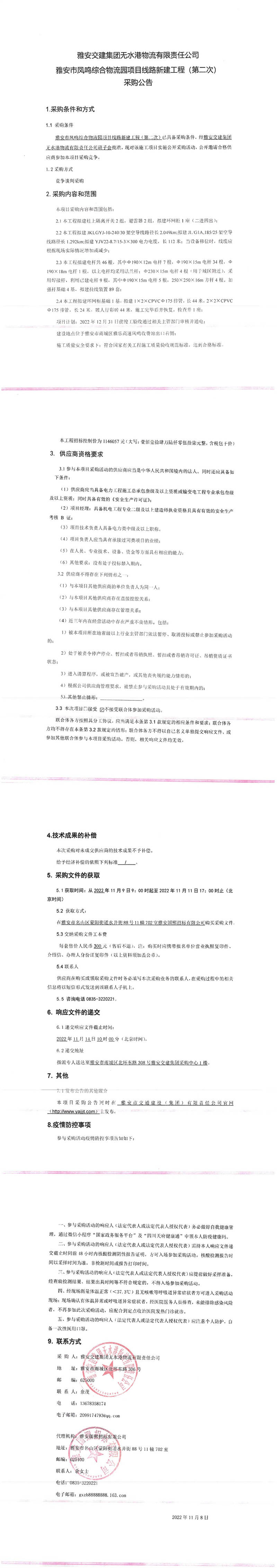 雅安交建集團(tuán)無水港物流有限責(zé)任公司雅安市鳳鳴綜合物流園項目線路新建工程(第二次)采購公告