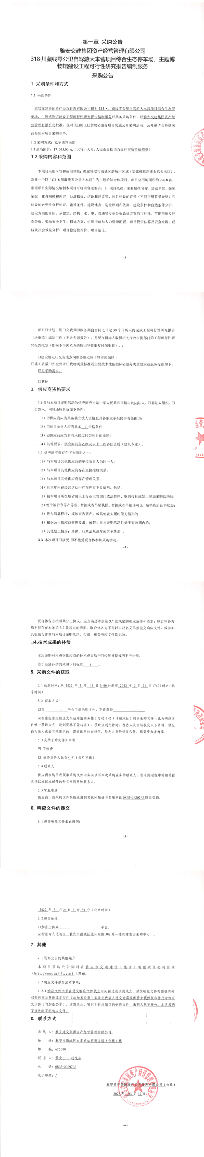 雅安交建集團(tuán)資產(chǎn)經(jīng)營管理有限公司318.川藏線零公里自駕游大本營項(xiàng)目綜合生態(tài)停車場、主題博物館建設(shè)工程可行性研究報告編制服務(wù)采購公告