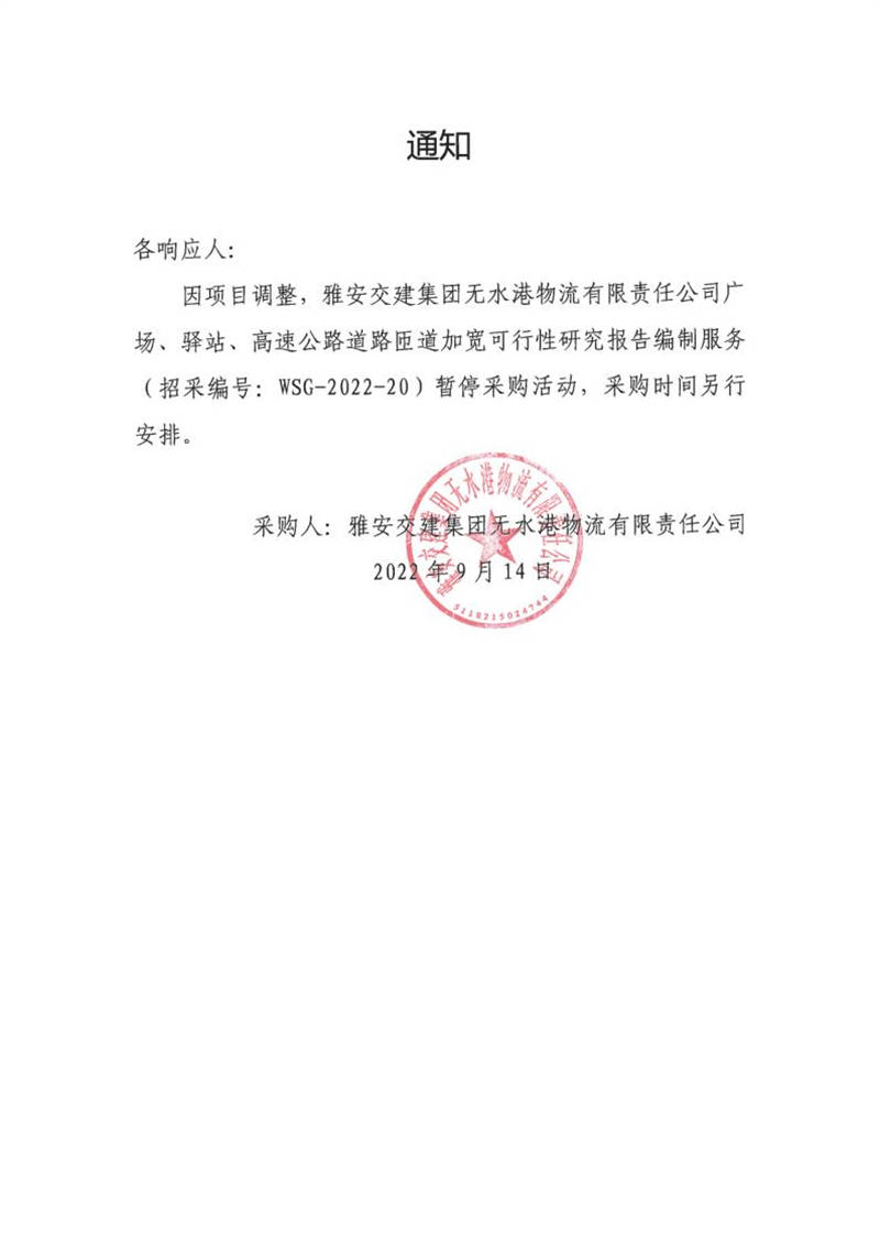 雅安交建集團(tuán)無水港物流有限責(zé)任公司廣場、驛站、高速公路道路匝道加寬可行性研究報(bào)告編制服務(wù)采購?fù)ㄖ?/h1>