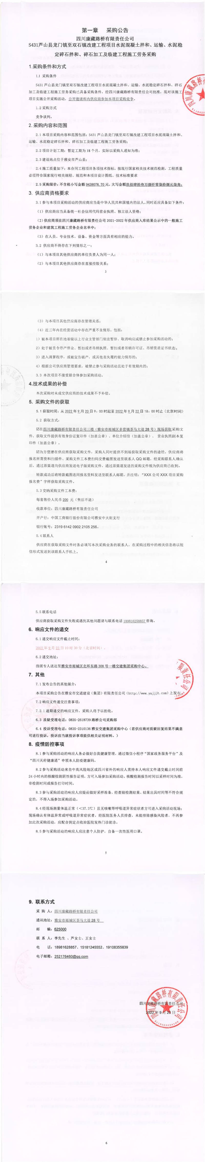四川康藏路橋有限責任公司S431蘆山縣龍門鎮(zhèn)至雙石鎮(zhèn)改建工程項目水泥混凝土拌和、運輸、水泥穩(wěn)定碎石拌和、碎石加工及臨建工程施工勞務采購公告