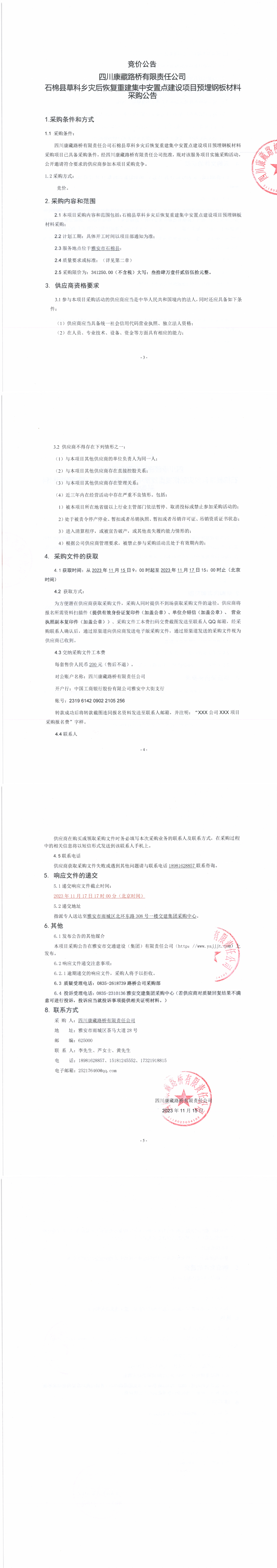 四川康藏路橋有限責(zé)任公司石棉縣草科鄉(xiāng)災(zāi)后恢復(fù)重建集中安置點(diǎn)建設(shè)項目預(yù)埋鋼板材料采購公告