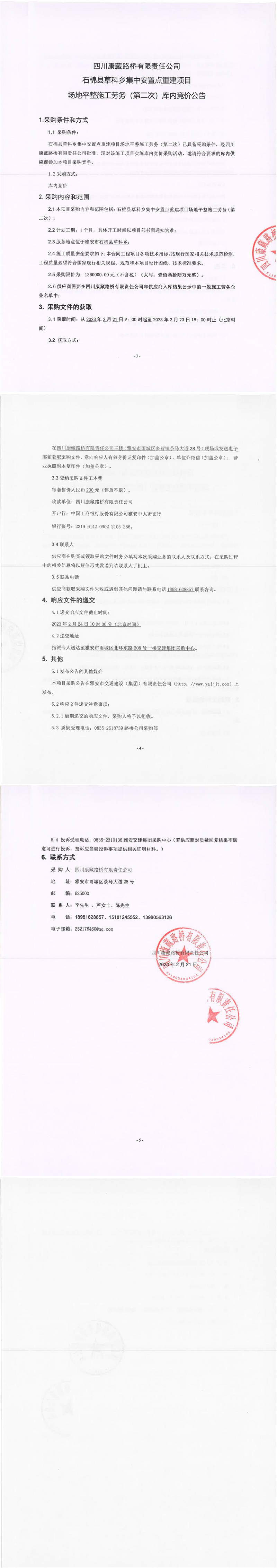四川康藏路橋有限責(zé)任公司石棉草科鄉(xiāng)集中安置點(diǎn)重建項(xiàng)目場地平整施工勞務(wù)(第二次)庫內(nèi)競價(jià)公告