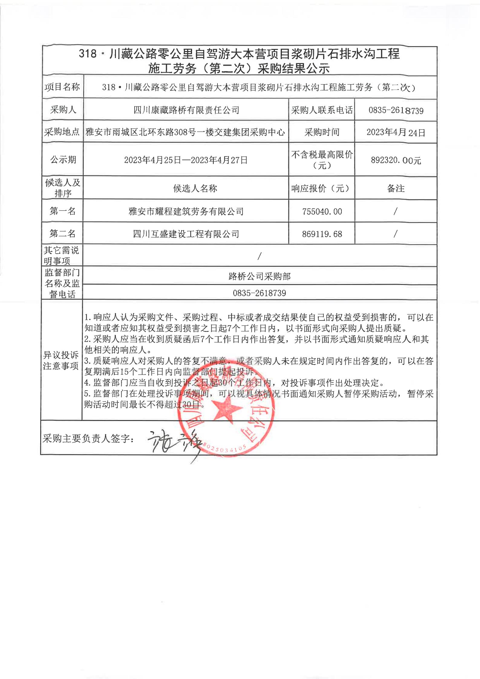 四川康藏路橋有限責(zé)任公司318·川藏公路零公里自駕游大本營項目漿砌片石排水溝工程施工勞務(wù)(第二次)采購結(jié)果公示