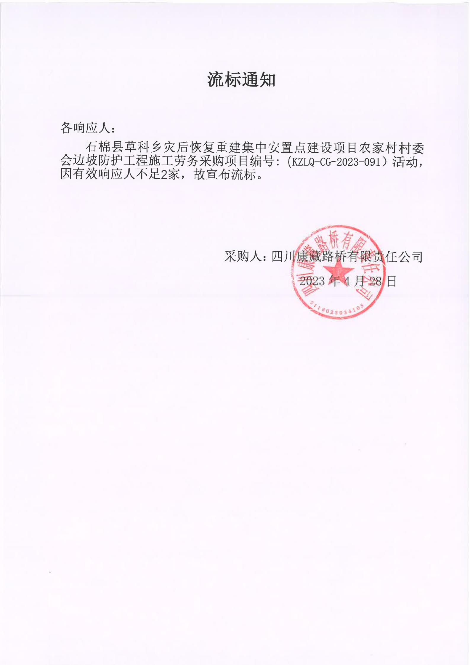 四川康藏路橋有限責(zé)任公司石棉草科鄉(xiāng)災(zāi)后恢復(fù)重建集中安置點建設(shè)項目農(nóng)家村村委會邊坡防護(hù)工程施工勞務(wù)流標(biāo)通知