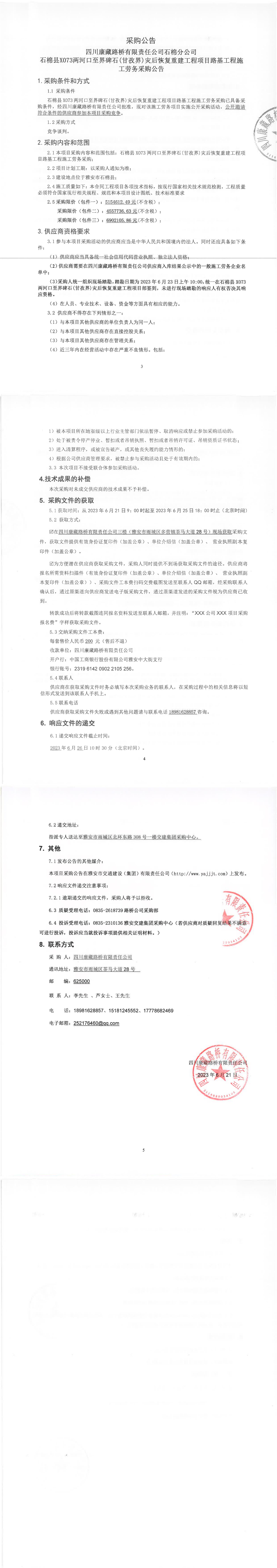 四川康藏路橋有限責任公司石棉分公司石棉縣X073兩河口至界碑石(甘孜界)災后恢復重建工程項目路基工程施工勞務采購公告