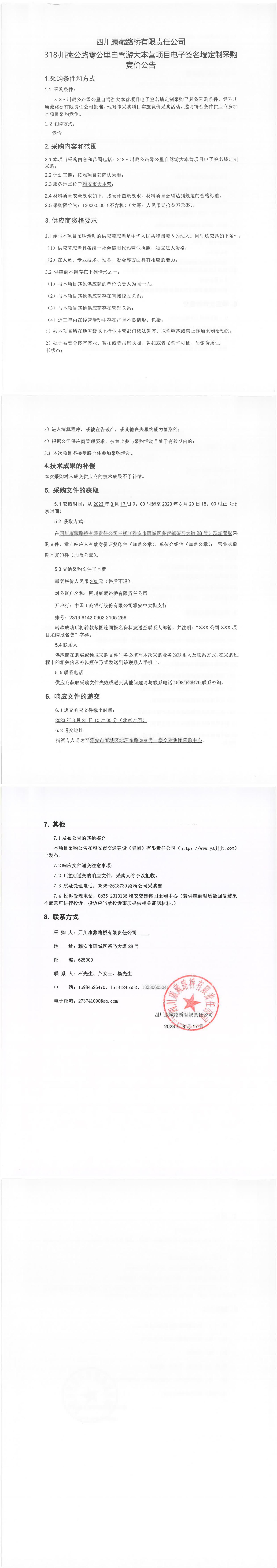 四川康藏路橋有限責(zé)任公司318·川藏公路零公里自駕游大本營項(xiàng)目電子簽名墻定制采購競(jìng)價(jià)公告