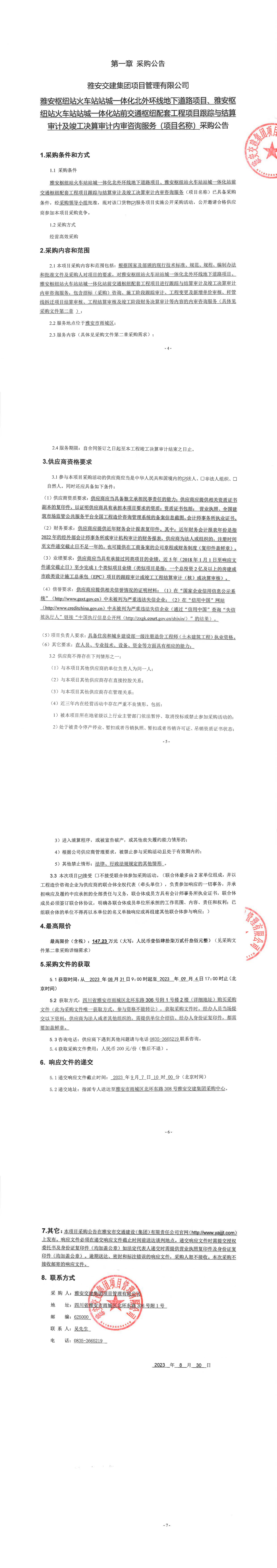 雅安交建集團(tuán)項(xiàng)目管理有限公司雅安樞紐站火車(chē)站站城一體化北外環(huán)線地下道路項(xiàng)目、樞紐站火車(chē)站站成一體化站前交通樞紐配套工程項(xiàng)目跟蹤與結(jié)算審計(jì)及竣工決算審計(jì)內(nèi)審咨詢服務(wù)(項(xiàng)目名稱)采購(gòu)公告
