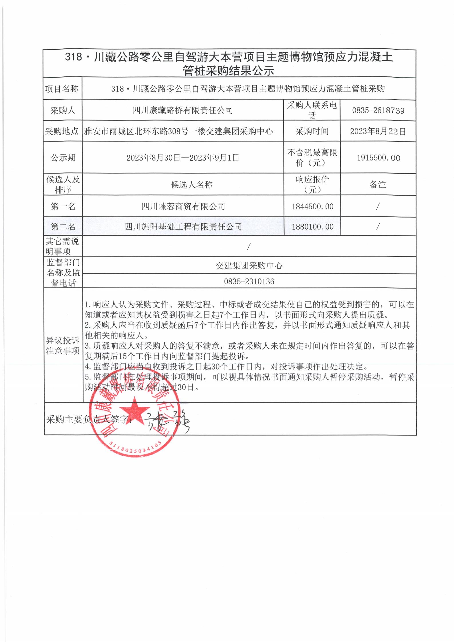 四川康藏路橋有限責任公司318·川藏公路零公里自駕游大本營項目主題博物館預(yù)應(yīng)力混凝土管樁采購結(jié)果公示