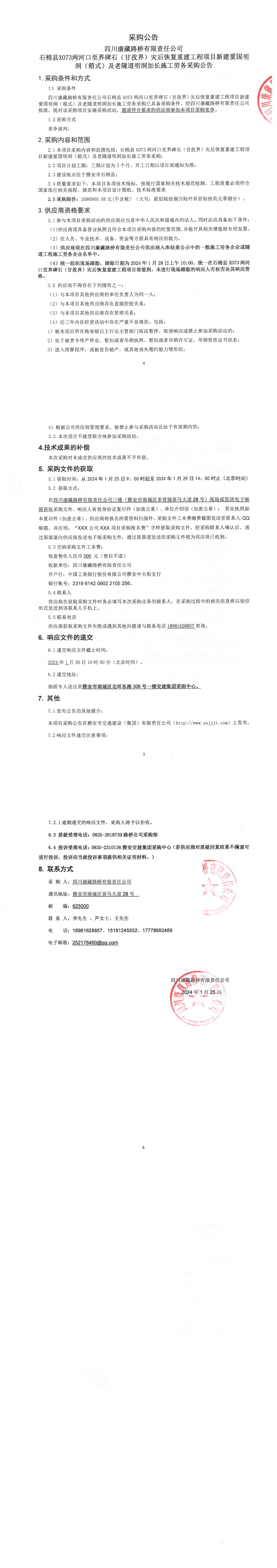 四川康藏路橋有限責(zé)任公司國道318名山區(qū)黑竹(成都界)至雨城區(qū)多營段改建工程三標段監(jiān)控中心材料采購(第二次)采購公告