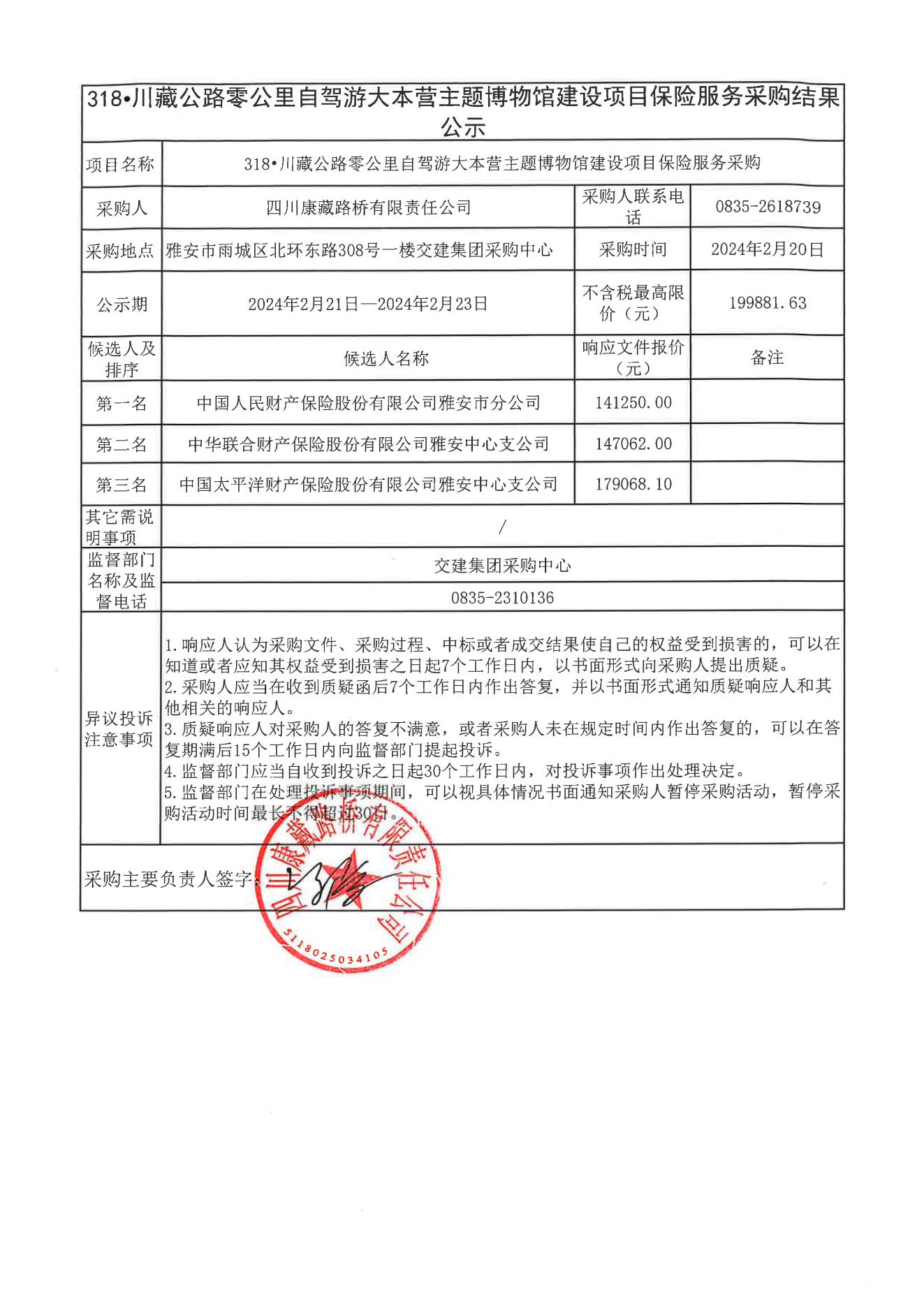 四川康藏路橋有限責(zé)任公司318•川藏公路零公里自駕游大本營(yíng)主題博物館建設(shè)項(xiàng)目保險(xiǎn)服務(wù)采購(gòu)結(jié)果公示