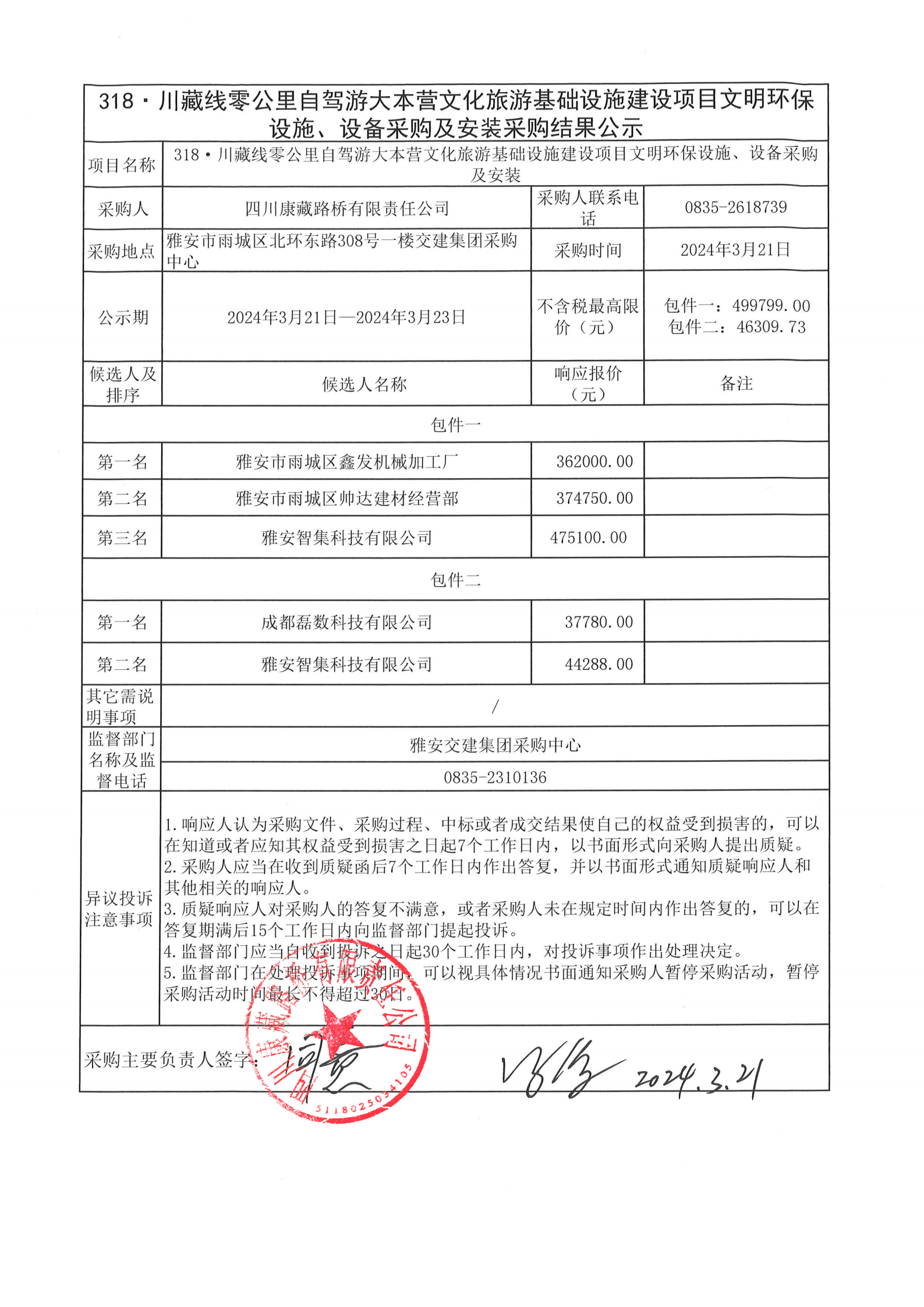 四川康藏路橋有限責(zé)任公司318·川藏線零公里自駕游大本營文化旅游基礎(chǔ)設(shè)施建設(shè)項(xiàng)目文明環(huán)保設(shè)施、設(shè)備采購及安裝采購結(jié)果公示