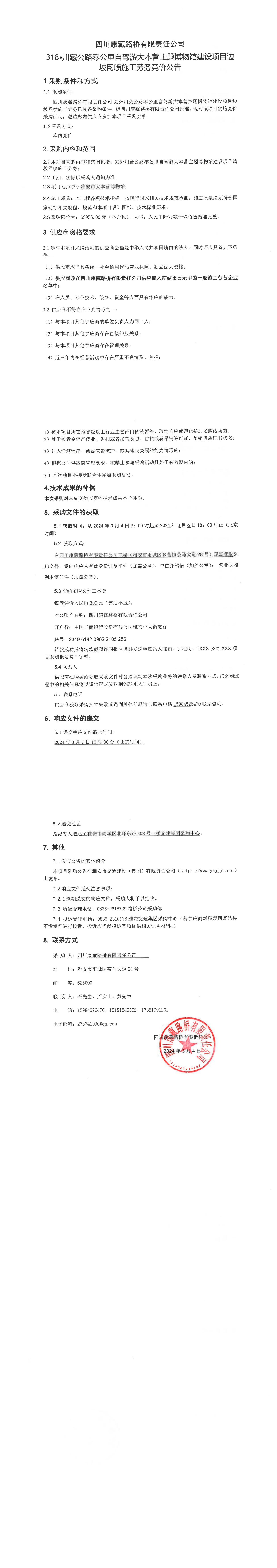 四川康藏路橋有限責(zé)任公司318·川藏公路零公里自駕游大本營主題博物館建設(shè)項(xiàng)目邊坡網(wǎng)噴施工勞務(wù)競價公告