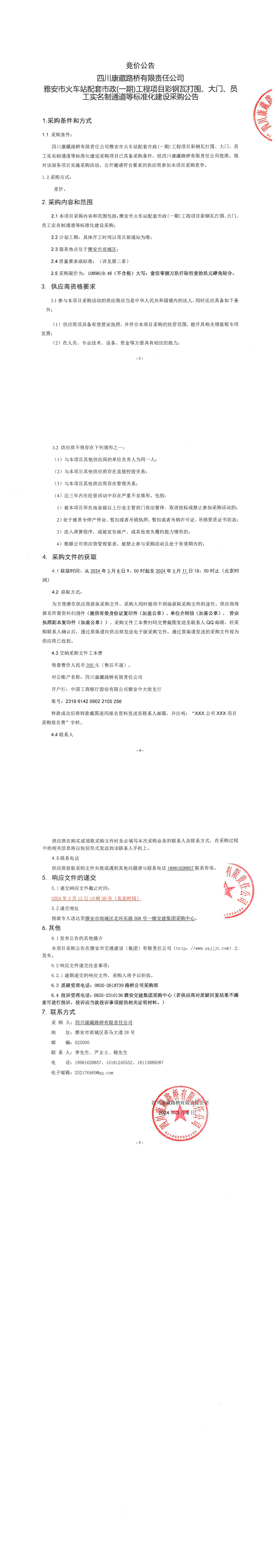 四川康藏路橋有限責任公司雅安市火車站配套市政(一期)工程項目彩鋼瓦打圍、大門、員工實名制通道等標準化建設(shè)采購公告