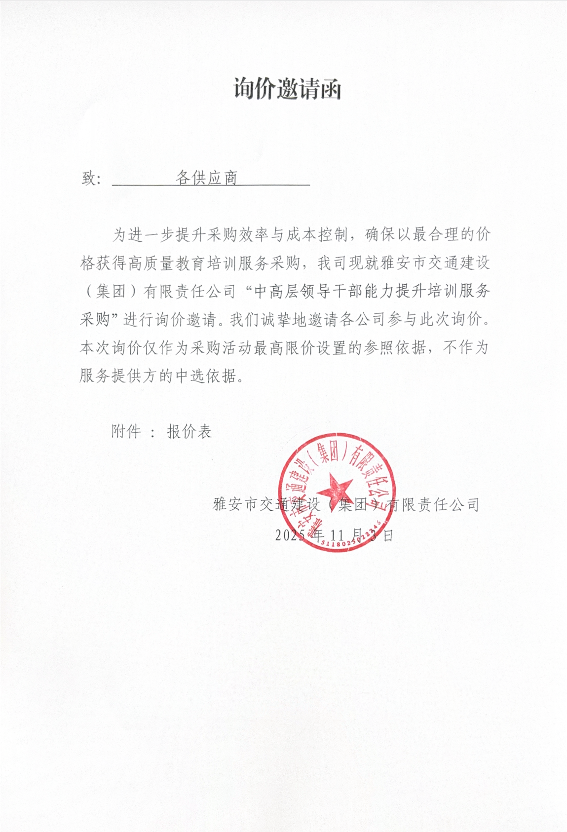 關(guān)于雅安交建集團(tuán)下屬子公司主要負(fù)責(zé)人經(jīng)濟(jì)責(zé)任審計項目限價的詢價函