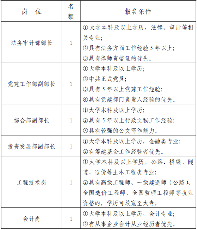 雅安市交建集團(tuán)是市屬重點(diǎn)國有企業(yè),主要從事交通基礎(chǔ)設(shè)施及配套服務(wù)設(shè)施的投資、建設(shè)、經(jīng)營(yíng)和交通資源的開發(fā)利用等業(yè)務(wù)。根據(jù)公司發(fā)展需要,決定面向社會(huì)公開招聘6名工作人員,現(xiàn)將有關(guān)事項(xiàng)公告如下: