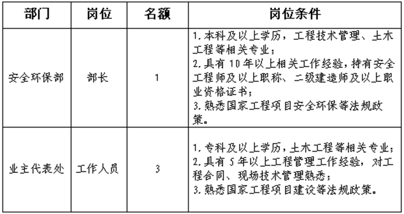 根據(jù)發(fā)展需要,決定面向社會公開招聘雅安市交通建設(shè)(集團)有限責(zé)任公司(以下簡稱“雅安交建集團”)所屬子公司相關(guān)人員4名,現(xiàn)將有關(guān)事項公告如下: