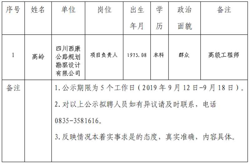 雅安交建集團子公司擬聘用人員公示 (勘察設計公司)