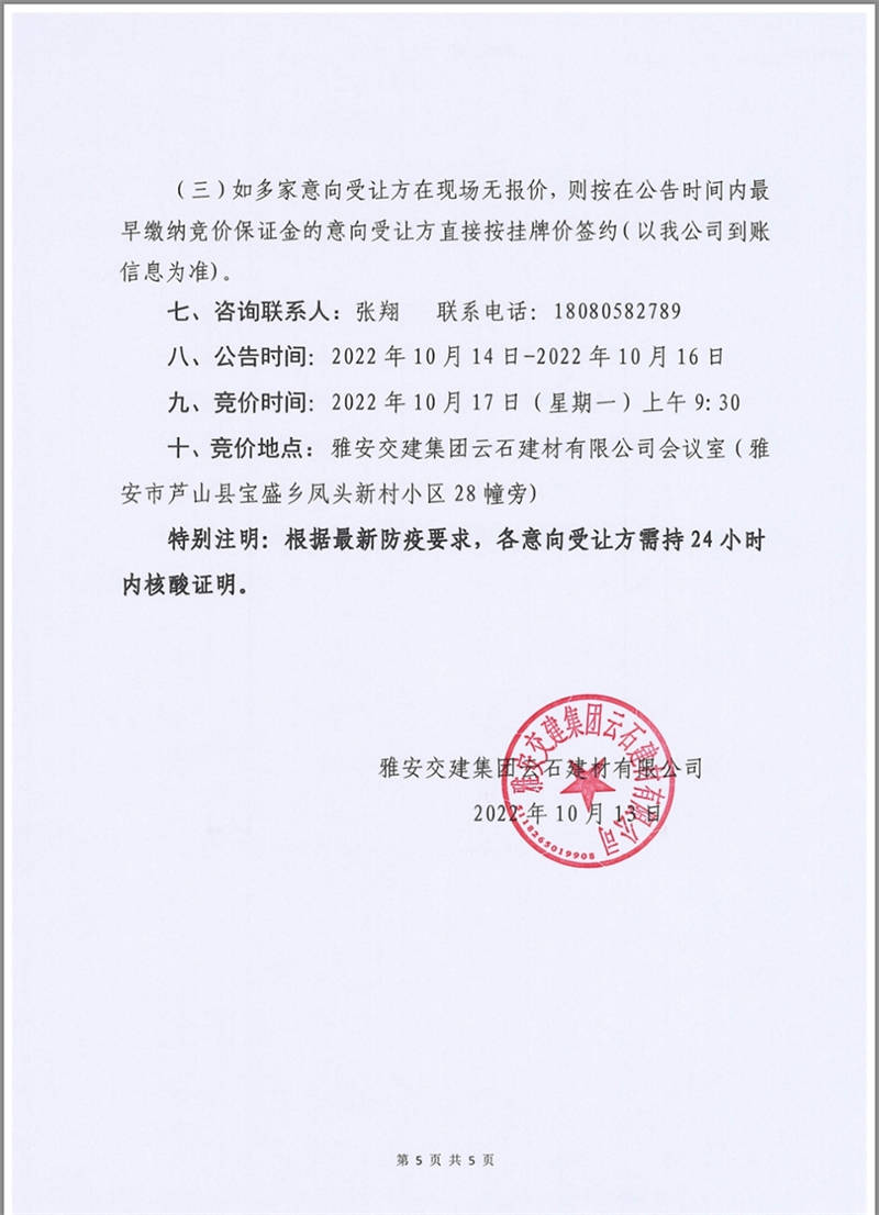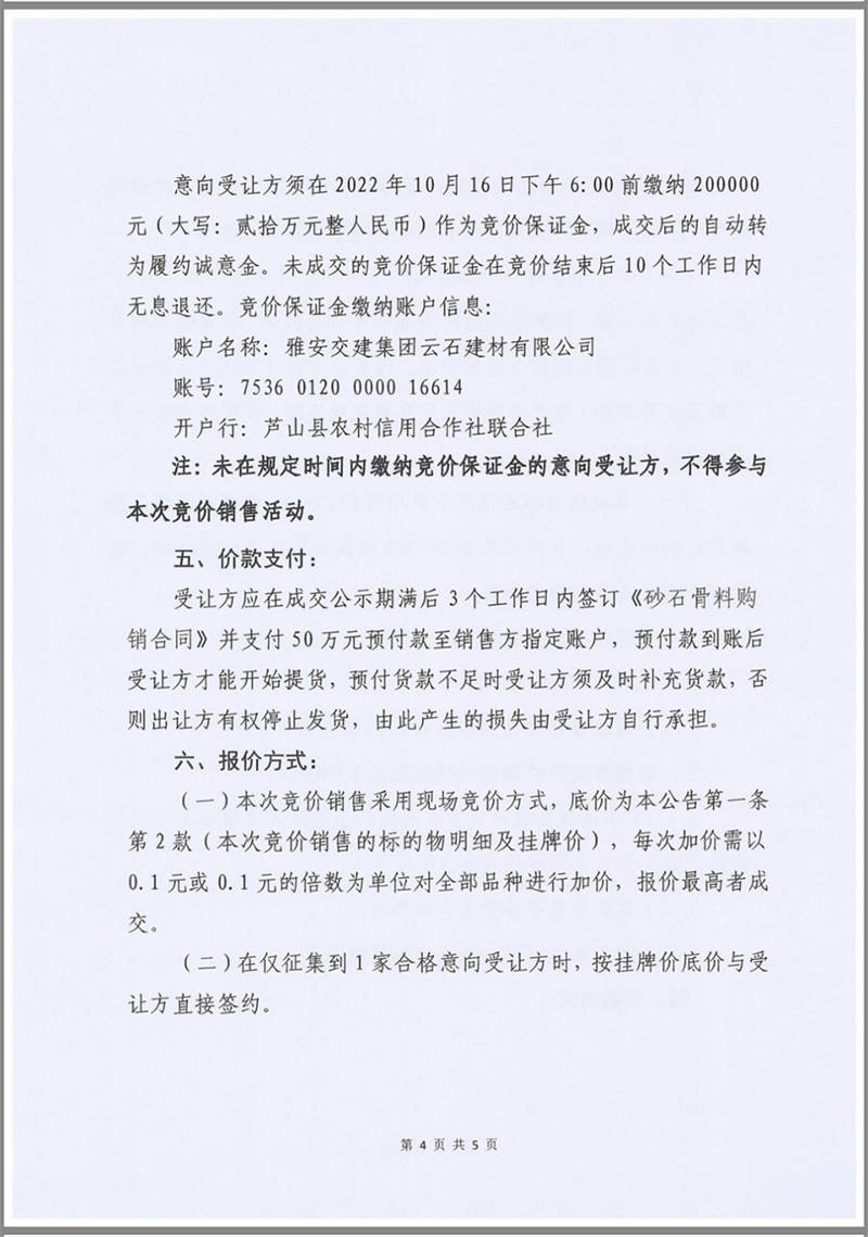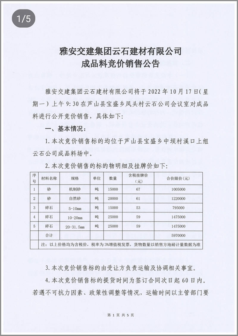 雅安交建集團(tuán)云石建材公司成品料競(jìng)價(jià)銷(xiāo)售公告10.13
