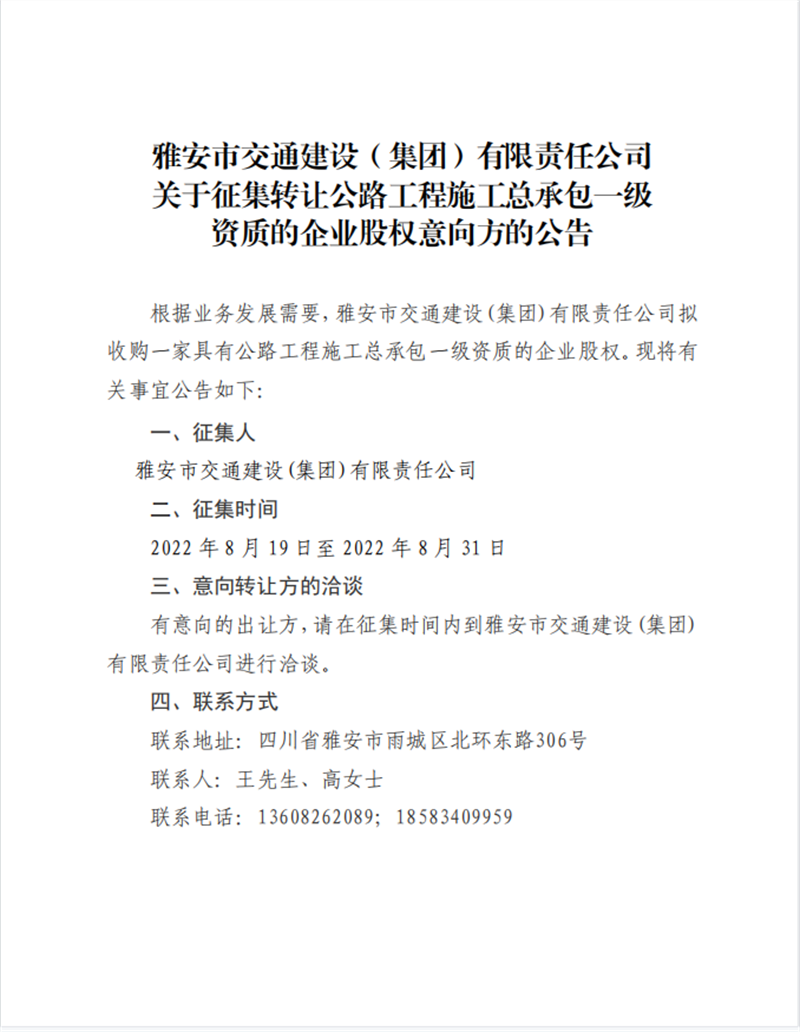 êPÓÚÕ÷¼¯ÞD׌¹«Â·¹¤³ÌÊ©¹¤¿‚³Ð°üÒ»¼‰ÙYÙ|µÄÆó˜I(y¨¨)¹É™àÒâÏòºÏ×÷·½µÄ¹«¸æ
