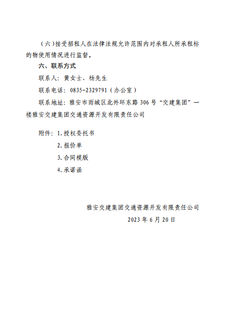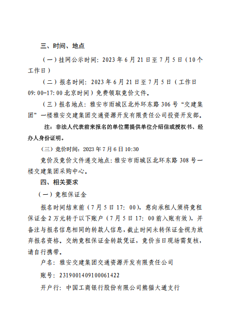 雅安交建集團交通資源開發(fā)有限責(zé)任公司雨名快速通道(名山服務(wù)區(qū))4、5號樓招租公告附件
