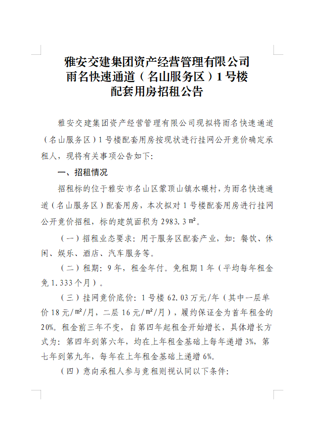 ÑŰ²½»½¨¼¯ˆF(tu¨¢n)ÙY®a(ch¨£n)½›(j¨©ng) I¹ÜÀíÓÐÏÞ¹«Ë¾ÓêÃû¿ìËÙͨµÀ£¨Ãûɽ·þ„Õ(w¨´)…^(q¨±)£©1Ì–˜ÇÅäÌ×Ó÷¿ÕÐ×⹫¸æ
