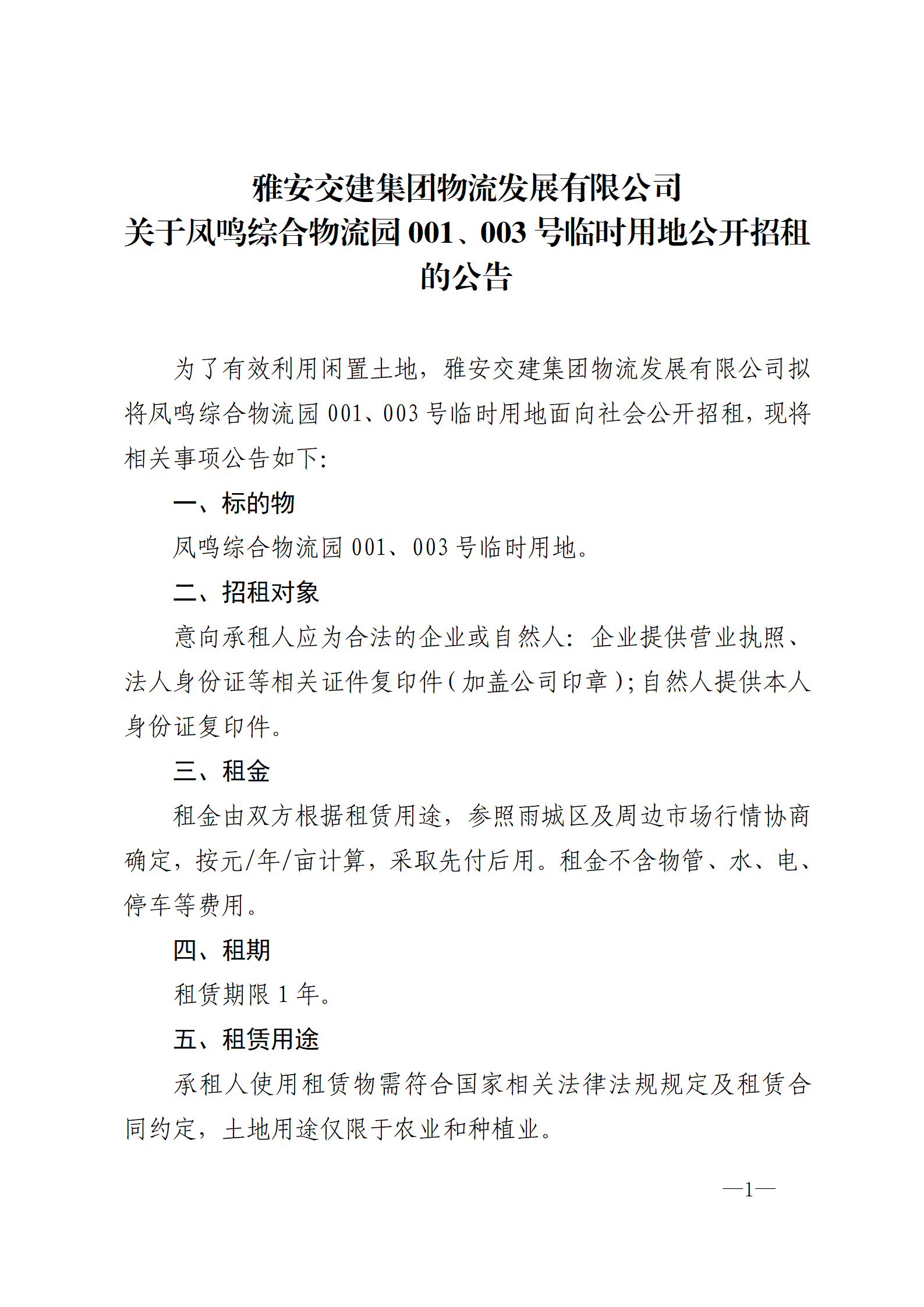 ÑŰ²½»½¨¼¯ˆF(tu¨¢n)ÎïÁ÷°l(f¨¡)Õ¹ÓÐÏÞ¹«Ë¾ êP(gu¨¡n)ÓÚøPøQ¾CºÏÎïÁ÷ˆ@001¡¢003Ì–ÅR•rÓõع«é_ÕÐ×âµÄ¹«¸æ