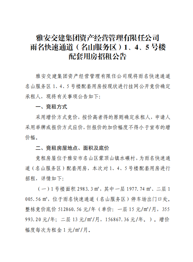 ÑŰ²½»½¨¼¯ˆF(tu¨¢n)ÙY®a(ch¨£n)½›(j¨©ng) I¹ÜÀíÓÐÏÞÈι«Ë¾ ÓêÃû¿ìËÙͨµÀ£¨Ãûɽ·þ„Õ(w¨´)…^(q¨±)£©1¡¢4¡¢5Ì–˜Ç ÅäÌ×Ó÷¿ÕÐ×⹫¸æ