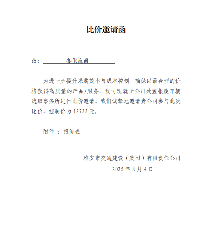 關(guān)于選取處置報(bào)廢車輛事務(wù)所的比價(jià)邀請(qǐng)函