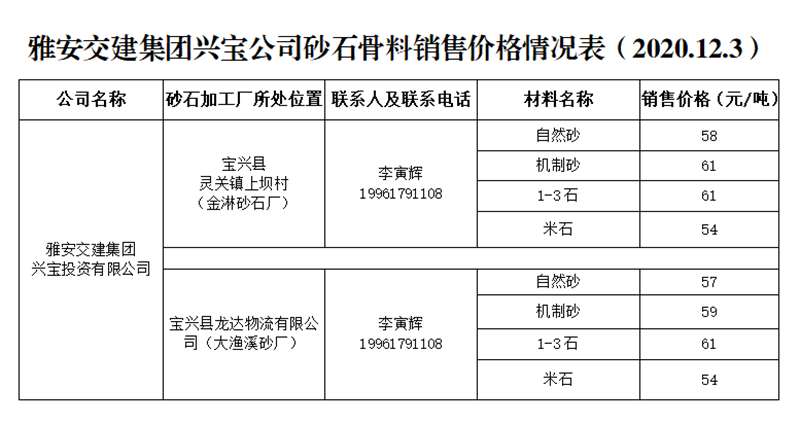 ÑŰ²½»½¨¼¯ˆF(tu¨¢n)ÅdŒš¹«Ë¾É°Ê¯¹ÇÁÏäN(xi¨¡o)ÊÛƒr(ji¨¤)¸ñÇé›r±í£¨2020.12.3£©